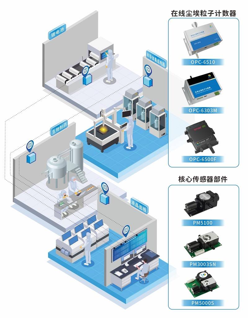 四方光電基于12年光散射技術(shù)的研究與創(chuàng)新,推出了在線塵埃粒子計數(shù)器OPC-6500F、OPC-6303M和OPC-6510,以及核心零部件激光塵埃粒子計數(shù)傳感器PM5000S、PM3003NS和PM5100,可廣泛應(yīng)用于百級、千級、萬級、十萬級等潔凈室環(huán)境。