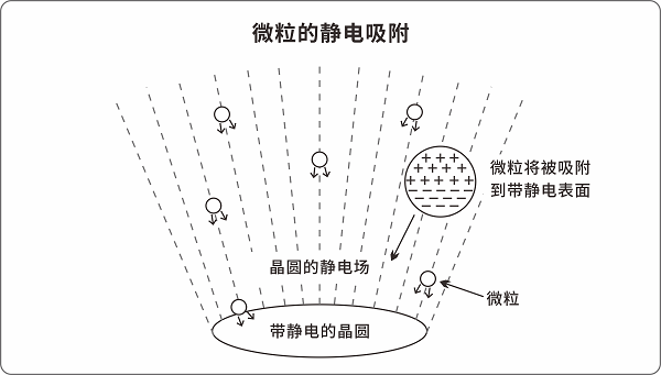 靜電的產生是因為每一種材料的電子能級不同,兩種不同材料在接觸時會發生電荷轉移。由于靜電的負面效應,使得保持高水準的產品質量和產品良率更加困難。平板顯示制程中常見靜電損害主要有ESA(顆粒吸附)污染、ESD(靜電放電)污染和電磁波干擾引起的設備故障三種。其中ESA污染是因為產品制程中的移動會造成產品表面有靜電場的存在,它的靜電場會把附近的微粒吸引到它的表面,并且其吸力較大,極難在沒有機械力的情形下清除。微粒的靜電吸附,增加了芯片表面的污染,進而降低了良率。