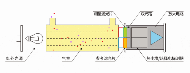 綜上,在封閉室內需要實時監測二氧化碳濃度,防范室內缺氧。NDIR技術檢測二氧化碳具有抗氣體交叉干擾,檢測精度高的優勢。因其檢測原理是基于氣體分子在特定紅外波段的吸收特性,在二氧化碳的紅外吸收光譜中,選擇4.26μm進行檢測,氣體吸收率最高,紅外輻射衰減顯著且水汽吸收率較低。