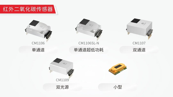 基于不同應用場景的需求,四方光電提供包括單通道,雙通道,雙光源,低功耗、小尺寸等多種不同規格的紅外二氧化碳傳感器產品,保證不同環境下檢測精度。CM1106檢測量程最高可達10000ppm,檢測精度為±(30ppm+3%讀數)。全量程溫度范圍矩陣式修正,減少環境溫濕度影響,確保檢測精度。CM1106SL-N在CM1106基礎上再開發,平均功耗僅有12uA,降低能耗的同時保持較高精度。CM1107采用雙通道技術,參考通道對測量通道進行實時補正,保證長期穩定性。