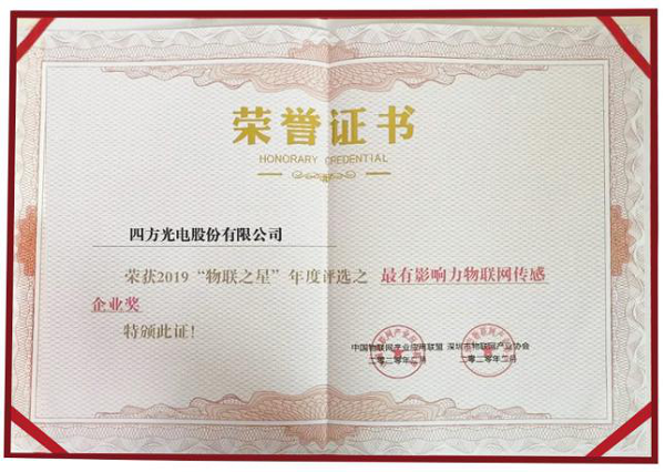由中國物聯網產業應用聯盟、深圳市物聯網產業協會主辦的2020中國物聯網CEO千人大會于2020年7月在深圳召開。在中國物聯網CEO交流晚宴暨“物聯之星”頒獎盛典上,經眾多權威專家評審,四方光電股份有限公司(以下簡稱“四方光電”)憑借在物聯網領域的影響力,榮獲“物聯之星”中國最有影響力物聯網傳感企業獎。