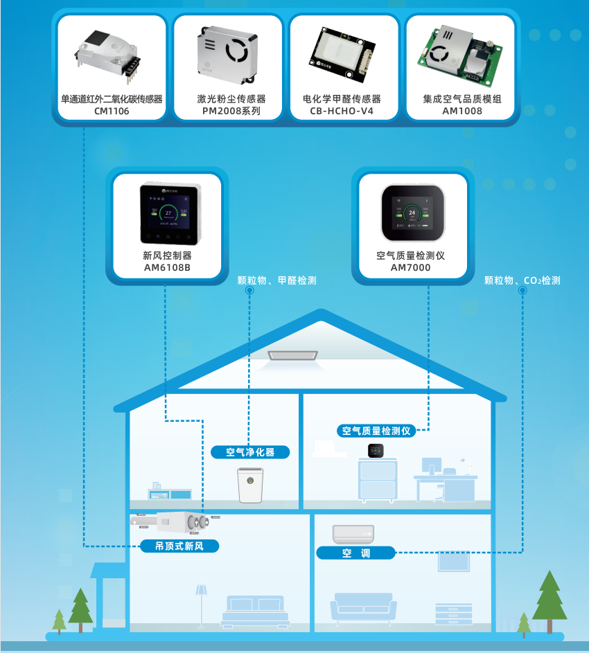 四方光電大力發(fā)展空氣品質(zhì)氣體傳感器在空氣凈化家電市場的配套。在室內(nèi)空氣品質(zhì)監(jiān)測應(yīng)用領(lǐng)域,基于十八年紅外NDIR技術(shù)的研究與創(chuàng)新,以及國內(nèi)外多家智能家電廠家的傳感器配套經(jīng)驗(yàn),四方光電相繼推出了單通道紅外二氧化碳傳感器CM1106、雙通道二氧化碳傳感器CM1107、雙光源紅外二氧化碳傳感器CM1109,可以滿足設(shè)備在各種應(yīng)用工況下的使用需求;并針對新風(fēng)系統(tǒng)及空調(diào)配套,專門開發(fā)了一款二氧化碳傳感器CM1106SD,經(jīng)過長期的市場沉淀,產(chǎn)品受到國內(nèi)外廣大客戶的認(rèn)可。還有激光型PM2.5傳感器、甲醛傳感器、VOC傳感器和新風(fēng)控制器等,可以根據(jù)客戶的差異化需求提供多種傳感器的集成方案。