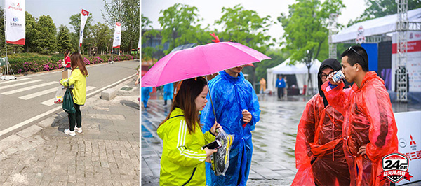親友團三位男生,原本只打算安排背背扛扛搬運物資、開車外出采購備品、首圈末圈輪流扛旗陪跑,誰料到跑步過程中,他們不間斷給選手陪跑,夜跑、雨跑、領跑……各種跑,跑圈最多的陪跑成員,跑了5圈,親友團實力擔當,妥妥的王者!