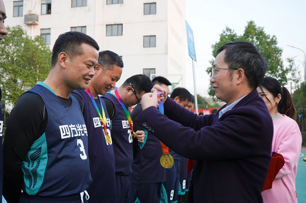 頒獎典禮上,四方光電總經理劉志強為獲獎隊伍球員頒發第八屆“四方杯”籃球聯賽定制獎牌及錦旗,同時表達了對下一屆四方杯的期許。他表示,本次籃球賽賽出了成績,更賽出了大家積極向上的拼搏精神。希望員工日常加強鍛煉,提高拼搏奮進、迎“籃”而上的意志,增強團隊之間的凝聚力和合作精神,并呼吁更多的員工加入體育運動中來,以健康的體魄迎接下一個挑戰。大家紛紛表示,在以后的工作中,會繼續保持這種團結協作、銳不可擋的精神,為公司的發展貢獻力量。