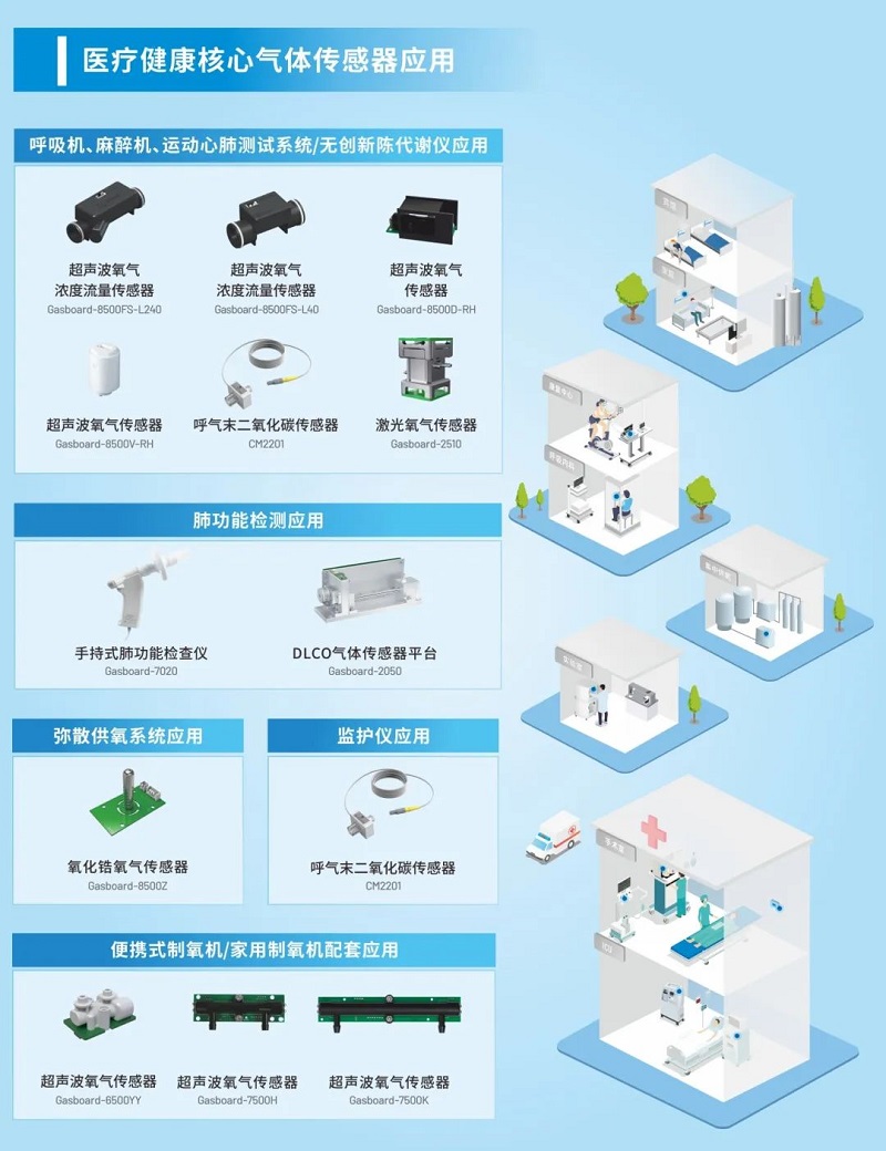 在醫(yī)療健康領(lǐng)域,四方光電憑借多年的研發(fā)及應(yīng)用經(jīng)驗,創(chuàng)新研制了超聲波氧氣傳感器、超聲波氧氣流量計、ETCO2傳感器等產(chǎn)品,這些醫(yī)用氣體傳感器具有測量精度高、響應(yīng)快速等優(yōu)勢,可滿足醫(yī)療領(lǐng)域呼吸測量和麻醉等需求,廣泛應(yīng)用于各種呼吸機(jī)、制氧機(jī)、高流量氧療儀、麻醉機(jī)和監(jiān)護(hù)儀中。并且基于多年NDIR、電化學(xué)和超聲波等氣體檢測技術(shù)積累,四方光電可為客戶提供專業(yè)的OEM/ODM技術(shù)服務(wù),包括多種氣體傳感器和整機(jī)的定制化解決方案,滿足醫(yī)療技術(shù)中氣體測量需求。