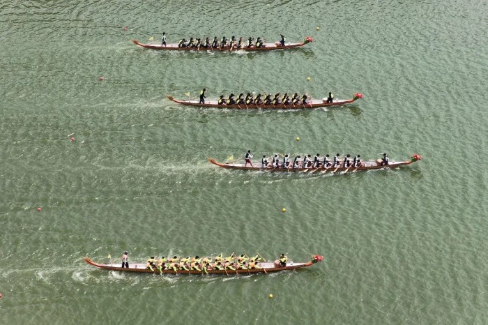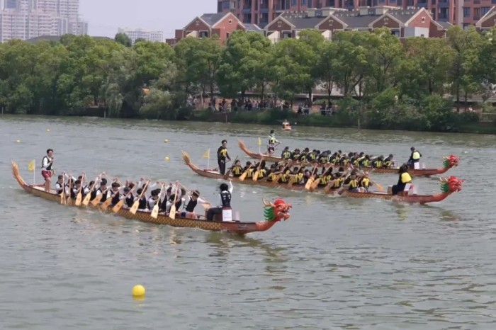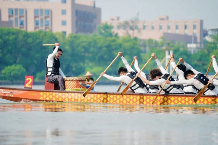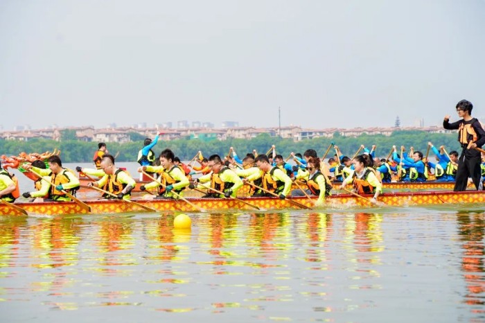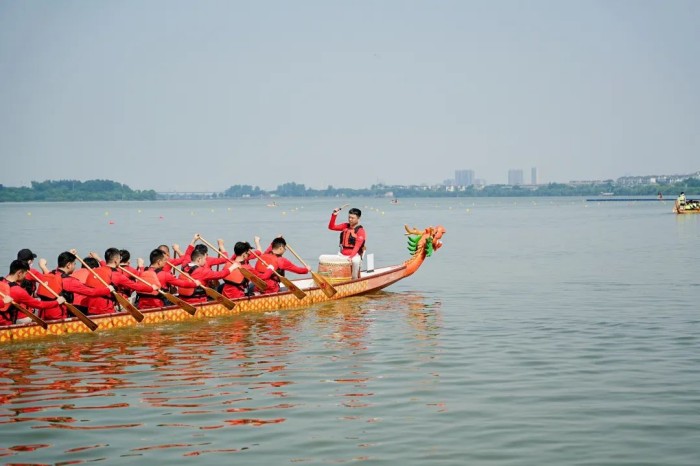 本次比賽采用300米直道競速賽制,湖經(jīng)四方共建龍舟隊、四方光電龍舟隊、三期“頭雁”學(xué)員龍舟隊、武漢市高新技術(shù)產(chǎn)業(yè)協(xié)會龍舟隊、長盈通龍舟隊、中步擎天和普迪真空龍舟隊、利楚商服龍舟隊、中科創(chuàng)新龍舟隊8支隊伍在碧波蕩漾的楊橋湖上展開激烈爭奪。
