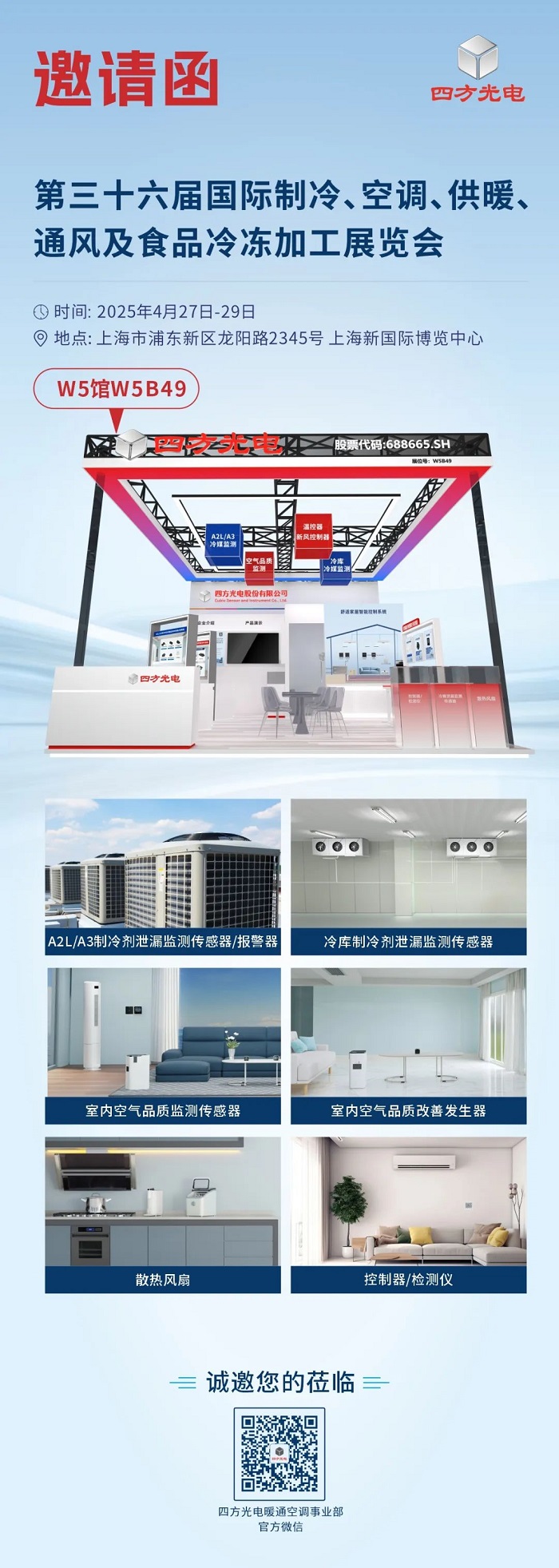 本次展會,四方光電將圍繞制冷、空調、供暖、通風等領域提供環境舒適性應用、A2L/A3制冷劑安全應用、散熱風扇、控制器/檢測儀等多個解決方案,并攜多個新品于W5B49展位驚艷亮相。