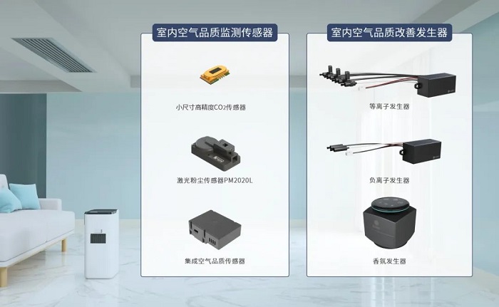 在室內空氣品質監測領域,四方光電推出了小尺寸高精度二氧化碳傳感器、激光粉塵傳感器PM2020L和多合一集成空氣品質傳感器AM2020等新產品,滿足終端客戶對空氣質量監測的多元化需求。在此基礎上,四方光電進一步拓展業務范圍,投入空氣品質改善領域,將已經在汽車上大批量使用的等、負離子發生器和香氛發生器引入空調、冰箱等家電設備,實現高效空氣凈化,為用戶打造舒適健康的家居環境。