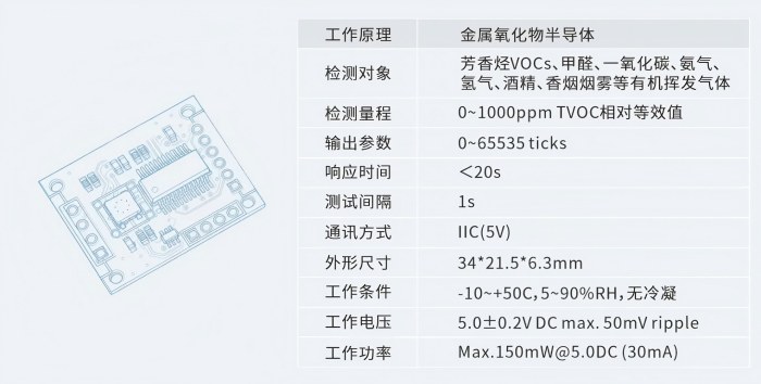 基于 MOX(金屬氧化物半導(dǎo)體)原理,采用特殊涂敷的敏感材料,對芳香烴VOCs、甲醛、一氧化碳、氨氣、氫氣、酒精、香煙煙霧等有機(jī)揮發(fā)氣體具有極高的靈敏度,能精準(zhǔn)分辨出空氣中已經(jīng)超標(biāo)的“化學(xué)負(fù)荷”。