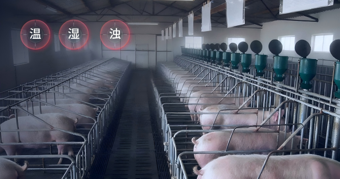 每到冬季,員工走進豬舍,撲面而來的往往是這樣的場景:暖融融的空氣裹挾著濃重的水汽,呼吸間都是濕熱的氣息。原來,為抵御嚴寒,豬舍內門窗緊閉,粉塵與多種氣體持續積聚,形成一種溫、濕、濁交織的特殊氣候。